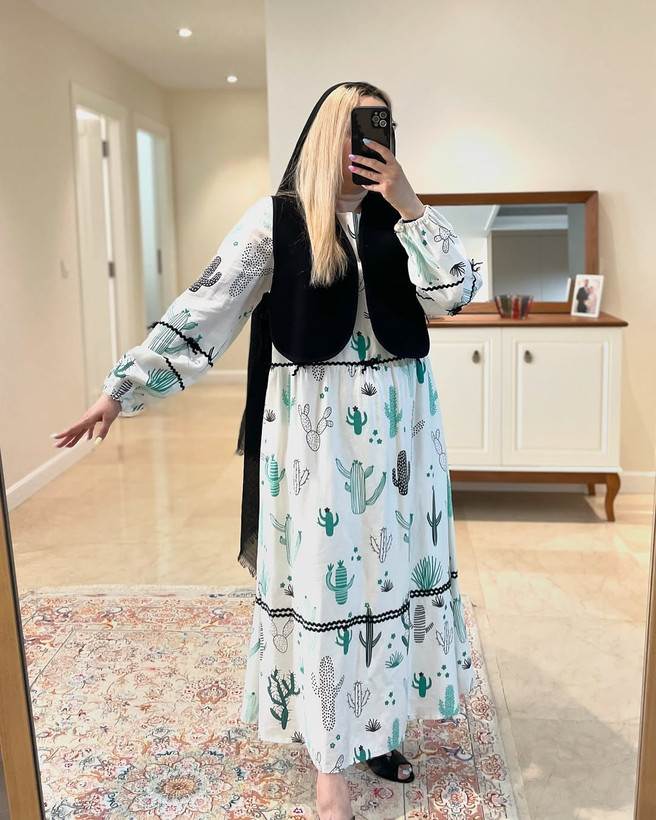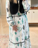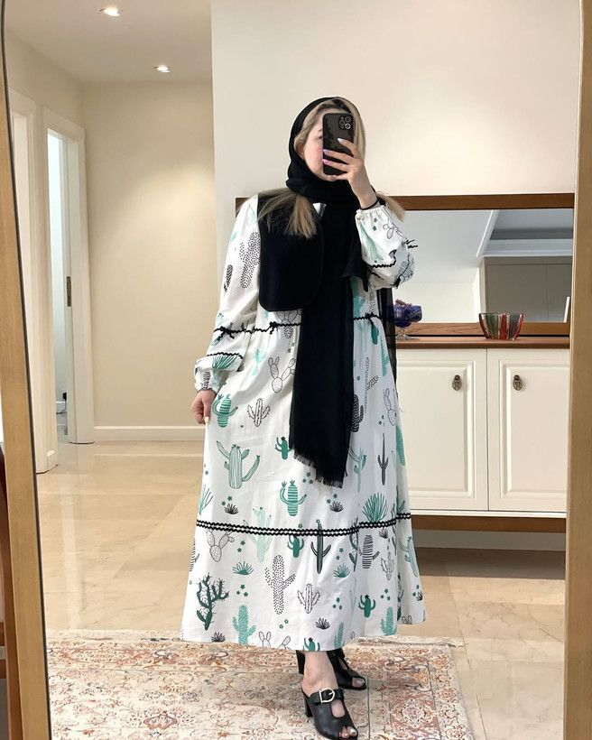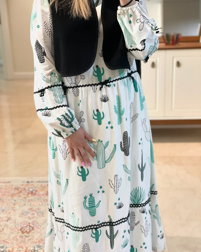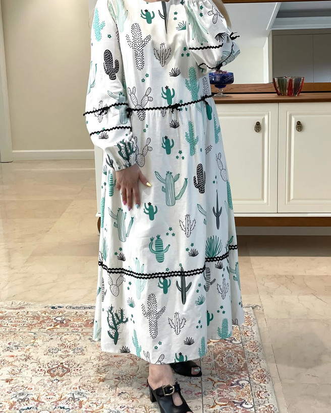 پیراهن کاکتوس پیراهن کاکتوس جنسش لینن ترک فوق العاده نرم و لَخته و خيلى خنكه بدن نما نيست و زيرش آستر نرم دوخته شده سايز ٣٨ ٤٠ ٤٢ ۴۴ قد ١٣٠ قابل سفارش به سايز و قد شما
