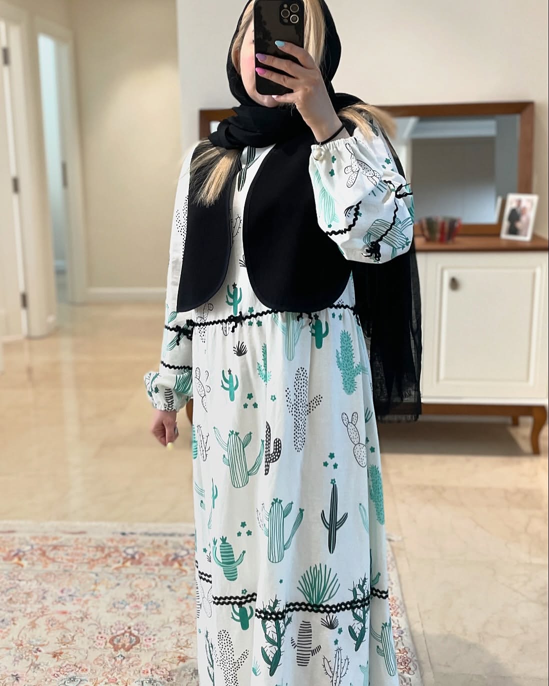 پیراهن کاکتوس پیراهن کاکتوس جنسش لینن ترک فوق العاده نرم و لَخته و خيلى خنكه بدن نما نيست و زيرش آستر نرم دوخته شده سايز ٣٨ ٤٠ ٤٢ ۴۴ قد ١٣٠ قابل سفارش به سايز و قد شما